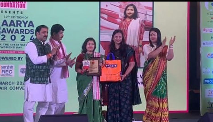 The AARYA Award 2024 was bestowed upon Sushree Tapaswini Das by guests such as internationally renowned Sarod player Padmashri Ustad Gulfam Ahmad Khan, former MLA Priyadarshi Mishra, and Dr. Rosalin Patsani Mishra, the founder of Parichay Foundation, alongside the Director of Ruchi Masala.