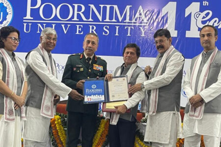 The ceremony was graced by Lt. Gen. N.S. Raja Subramani, Vice Chief of Army Staff, Indian Army, as the Chief Guest. Dr. Suresh Chandra Padhy, President (Vice Chancellor) of Poornima University, along with other distinguished dignitaries, was also present on the occasion.