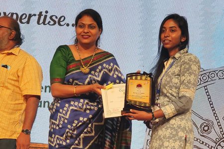 While the prestigious Professor Harish Mohanty Oration Award was conferred on Prof. Dr. HemantaKumar Kar, HoD of Dermatology, KIMS for the year 2022, first prize in Paper Presentation by post-graduate students went to Dr. Raveena K (Final Year Resident) of KIMS Bhubaneswar.