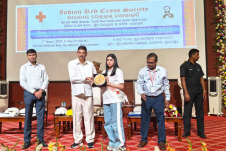 Ms. Aya Dib, a dedicated Youth Red Cross (YRC) volunteer from KIIT-DU, was honored with the Best YRC Volunteer Award 2020-21 on 7th March 2025 for her remarkable contributions to social service and humanitarian relief efforts. The award was presented to Ms. Dib by Dr. Hari Babu Kambhampati, Hon’ble Governor of Odisha in the presence of Dr. Ramesh Chandra Behera, Youth Red Cross Officer and Sri Ganesh Chandra Patra, IAS, Secretary of the Youth Red Cross, Odisha.