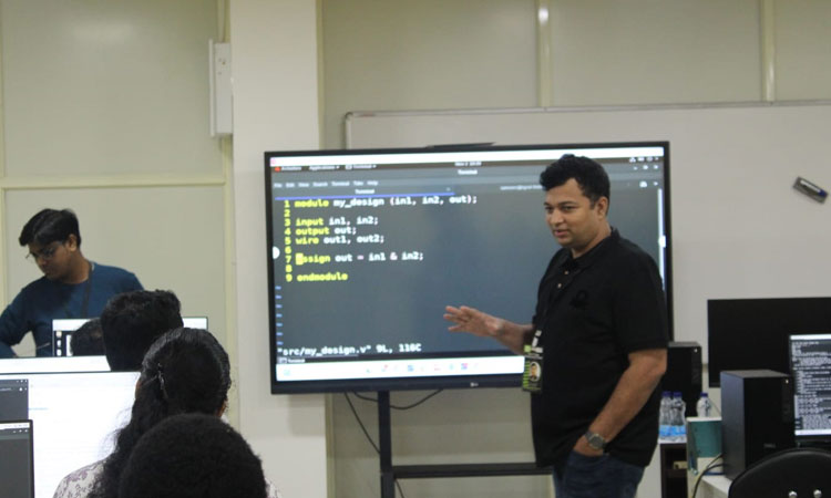 Renowned industry experts—Mr. Gaurav Bhargava from Qualcomm; Mr. Sameer Chillarlige from Cadence; Mr. Venkata Rangam Totakura from Infineon Technologies; and Dr. Rajit Karmakar from AMD conducted insightful technical sessions on fault modeling, scan-based testing, test generation, and memory testing. Participants also gained hands-on experience through lab sessions on industry-standard VLSI testing tools.