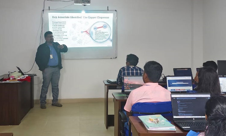 The programme commenced with a Welcome Address by Dr. Debasis Mohapatra, Assistant Professor, Department of Zoology, School of Indic Studies and Tribal Science, KISS-DU, who highlighted the importance of Bioinformatics in contemporary life sciences research and interdisciplinary learning. This was followed by the felicitation of the invited resource person, acknowledging their academic contributions and presence.