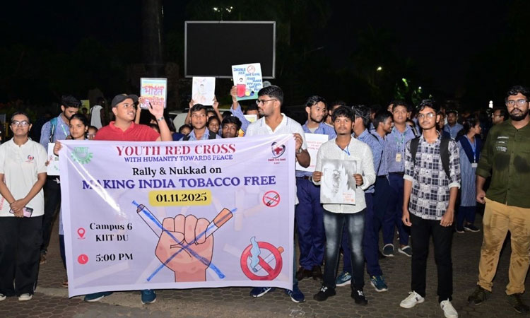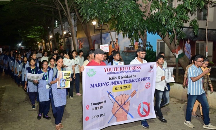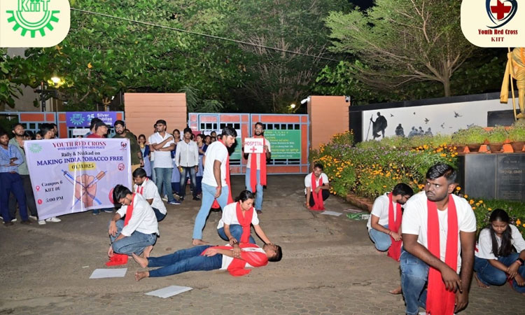 The Youth Red Cross (YRC) volunteers of KIIT-DU and KIIT-ITI organized a vibrant rally along with a Nukkad Natak at different campuses of KIIT University on 1st November 2025, with over 100 volunteers coming together to raise awareness about the dangers of tobacco consumption and to advocate for a healthier, tobacco-free nation.