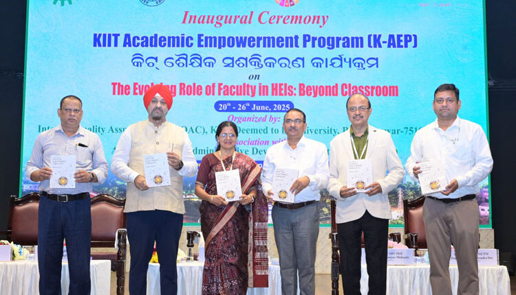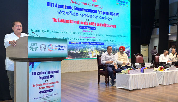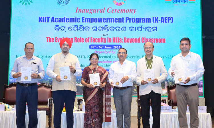 The inaugural ceremony of the KIIT Academic Empowerment Program (K-AEP) 2025 was held on 20th June 2025 with great enthusiasm and active participation from faculty, staff, and academic leaders. The theme of K-2025 is “The Evolving Role of Faculty in HEIs: Beyond Classroom” which will be held during 20-26th June 2025. The K-AEP 2025 aims to equip faculty members with the knowledge, skills, and perspectives necessary to thrive in a dynamic academic environment. The K-AEP will explore critical areas such as fostering interdisciplinary research collaborations, embracing innovative pedagogical approaches for blended and online learning, leveraging technology for enhanced student engagement, promoting entrepreneurship and industry linkages, contributing to SDGs, and fostering a culture of mentorship and lifelong learning.