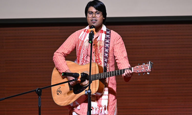 A KIIT student, Mr. Mrityunjay Das, hailing from the beautiful state of Assam, presented a cultural performance by singing an Assamese song, gracefully highlighting the rich traditions and heritage of the state. The event was graced by the Hon’ble Governor of Odisha, the Hon’ble First Lady, along with several distinguished dignitaries and senior leaders, making the celebration truly memorable.