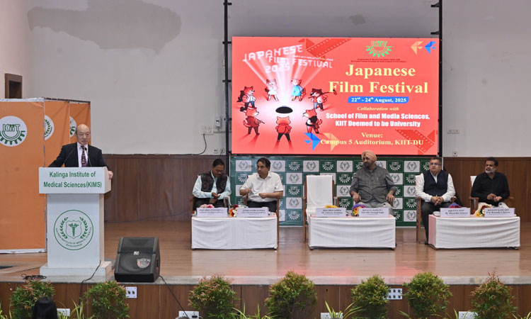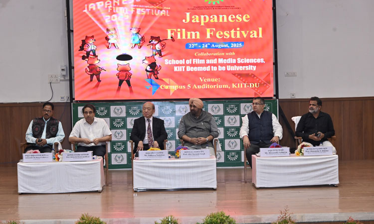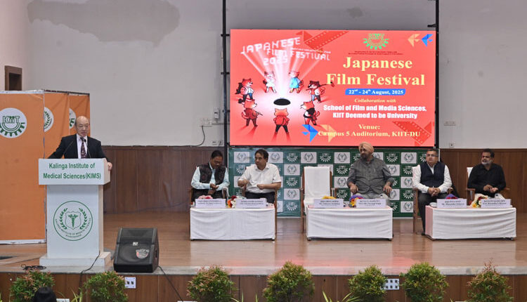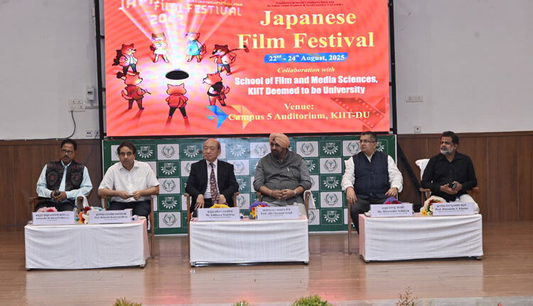 The Japanese Film Festival ‘Japan Talkies’ commenced at the KIIT premises on 22nd August, 2025. This marks the second occasion that this festival is being hosted at KIIT University. The film festival has been inaugurated and organized by KIIT in partnership with the Japan Foundation, the Federation of Film Societies of India, and the Consulate General of Japan in Kolkata. The festival, which will run until the 24th August, was inaugurated  on 22nd August, 2025 in the presence of Mr. Ishikawa Yoshihisa, the Consul General of Japan in Kolkata; Himanshu Acharya, Head of Mitsubishi Corporation India, Kolkata Branch; Prof. Sharanjit Singh, Vice Chancellor of KIIT DU; Prof. Debashish Bandyopadhyay, Vice Chancellor of KISS DU; Debraj Pradhan, Director General of IRO, KIIT; and Mr. Himanshu Khatua, Director General of the School of Film and Mass Media Communications.