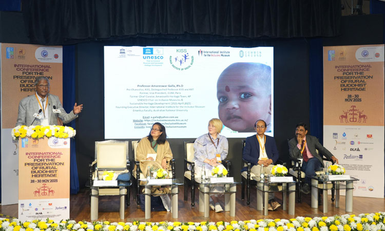 There is increasing concern across Asia—especially in India, China, Korea, and Japan—that, apart from iconic sites, more than 90% of Buddhist heritage remains unprotected. To address this situation, the International Academy for the Preservation and Management of Unprotected Buddhist Heritage and Sites in Rural Areas is being established by the Indian Trust for Rural Heritage and Development. Professor Dr. Amareswar Galla, Pro-Chancellor, KISS Deemed to be University, and Distinguished Professor of Indigeneity and Inclusive Museum & Heritage Studies at KISS-DU and KIIT-DU, addressed a major international conference at the end of last year on the proposal for the establishment of the Academy.