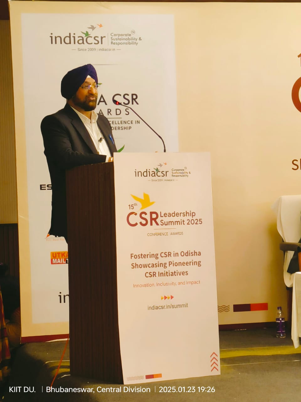 Prof. (Dr.) Saranjit Singh, Vice Chancellor, KIIT-DU received an award at the prestigious 15th CSR Leadership Summit 2025 on the theme “Fostering CSR in Odisha: Showcasing Odisha’s Pioneering CSR Initiatives”.