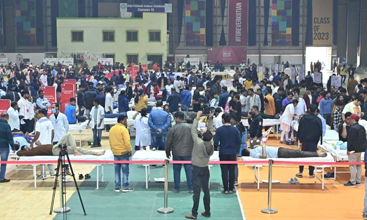A mega blood donation camp was organized by KIIT & KISS on 11th January, 2025, and a record 3,000 units of blood donations were made. As one of the initiatives of the Art of Giving, this blood donation camp was inaugurated by Dr. Achyuta Samanta, Founder, KIIT and KISS.