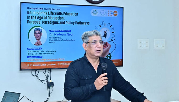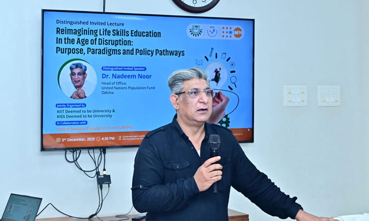 KISS-DU and KIIT-DU jointly organized a Distinguished Invited Lecture on “Reimagining Life Skills Education in the Age of Disruption: Purpose, Paradigms and Policy Pathways” on 5th December 2025. Dr. Nadeem Noor, a development thinker, speaker and philosopher with nearly two decades of leadership across UN systems, delivered the lecture. He has held senior leadership positions and currently serves at the UNFPA Head Office, and was invited as the esteemed resource person.