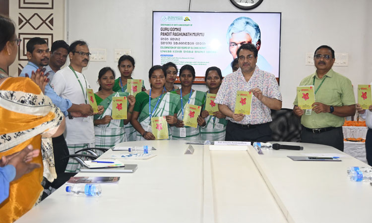 Following the garlanding ceremony, “KUNAMI” a journal in Santal language was unveiled in the presence of the Founder. The publication is a commendable step in protecting, promoting and preserving Santali language and culture and marks the centenary year of OlChiki script and pays tribute to the contributions of Pandit Raghunath Murmu. A special mention of Mr. Raju Mardi, a Santali research scholar, was made, for his article on Dr. Achyuta Samanta, wherein he has written about the life, works and contributions of Dr. Samanta towards the growth and development of indigenous people.