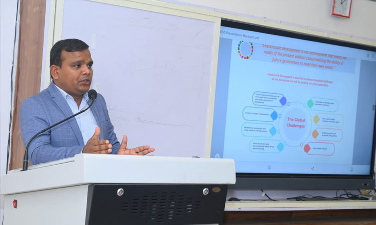 Speaking in turn, Mr. Debendra Swain, threw light on all the Sustainable Development Goals with prime focus on the specific targets under each Goal. He explained in detail the performance of Odisha regarding SDGs and the roadmap envisioned by the state, hence contributing to meeting the UN Agenda 2030. He opined that the SDGs play a seminal role in realizing the vision for Viksit Bharat 2047 and Viksit Odisha 2036. Mr. Swain also shared the example of KISS as a model institution which has been addressing SDGs since its inception. He concluded in an inspiring note by discussing some of the major internships and career opportunities with the United Nations.