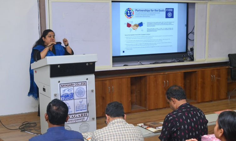 Speaking on the occasion, the Chief Guest Shri Lagnajit Rout, CDO-cum-EO Zilla Parishad (OAS), (SAG) highlighted some of the key initiatives undertaken by the Government and Odisha’s performance in SDGs. He also touched upon the relevance of seventeen goals for the students. The session was also graced by Shri. Bidyadhar Naik, Joint Director (P&S) (OPS); Smt. Arunima Kar, Assistant Director, Planning; Ms. Asfa Manzoor, Finance Expert; Mr. Niranjan Biswal, DPMU as well as Dr. Bipin Kumar Pattnaik, Principal; Dr. Ashutosh Mishra, and Mr. Ashok Kumar Sahoo from Nayagarh Autonomous College.