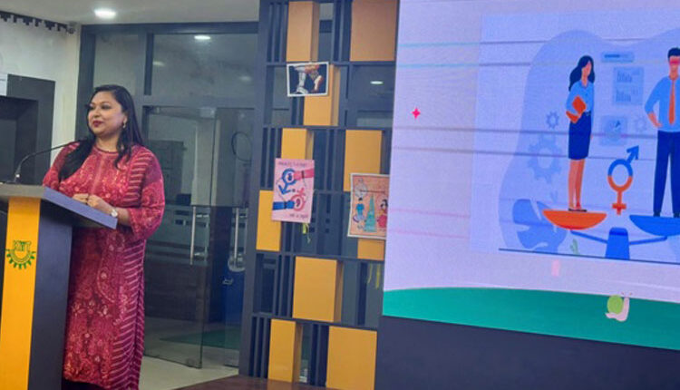 The session began with the ceremonial lighting of the lamp, followed by a welcome address from Dr. Krishna Chakravarty, Dean, KSAC, who emphasized the importance of developing socially responsible student leadership to advance gender justice. Ms. Sadhana Mishra from KIMS Hospital, delivered a compelling address on everyday gender inequality, offering insights into how deeply embedded societal roles and expectations influence daily life.
