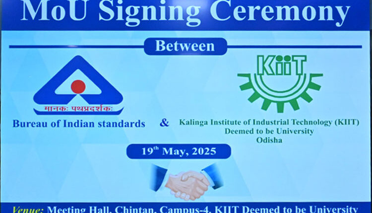 KIIT Deemed to be University, Bhubaneswar has taken a significant step toward fostering academic excellence and research innovation by signing a Memorandum of Understanding (MoU) with the Bureau of Indian Standards (BIS)—the National Standards Body of India. The MoU signing ceremony was presided over and witnessed by Prof. (Dr.) Saranjit Singh, Vice Chancellor, KIIT-DU; Prof. (Dr.) J. R. Mohanty, Registrar, KIIT-DU; Shri A. K. Purohit, Senior Director and Head, BIS Bhubaneswar; Prof. (Dr.) B. Surekha, Dean, School of Mechanical Engineering, KIIT-DU and professors from different schools of Engineering.