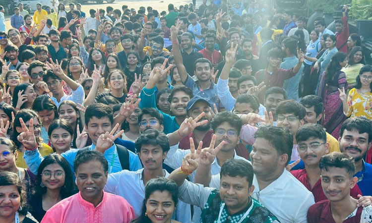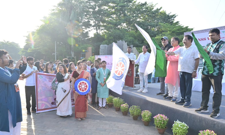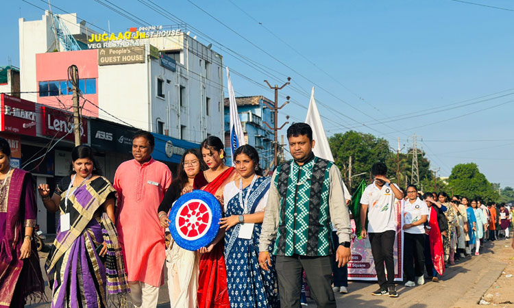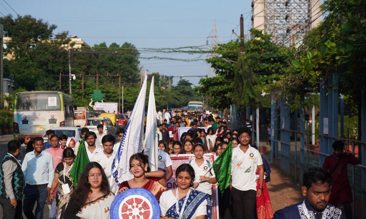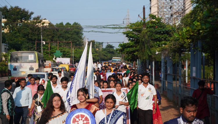 The rally witnessed the enthusiastic participation of more than 550 NSS volunteers, students, and staff members, all dressed in traditional attire representing India’s diverse cultures. The programme commenced from Campus-6, Gandhi Chawk, and proceeded towards KIIT Square, with participants marching in unison while echoing bold and dignified NSS slogans.