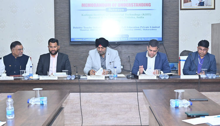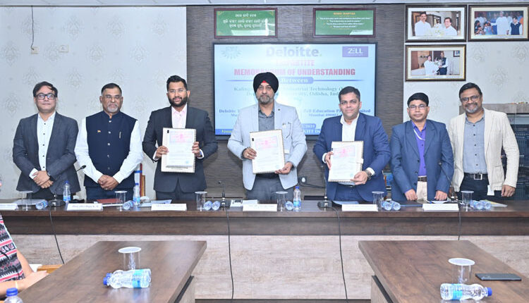 The MoU was signed by Prof. (Dr.) Saranjit Singh, Vice Chancellor, KIIT-DU, on behalf of KIIT, with Shri Jenul Sanghani, Partner, Deloitte Touche Tohmatsu, and Shri Anant Bengani, Co-founder and Executive Director, Zell Education, as counterparts.