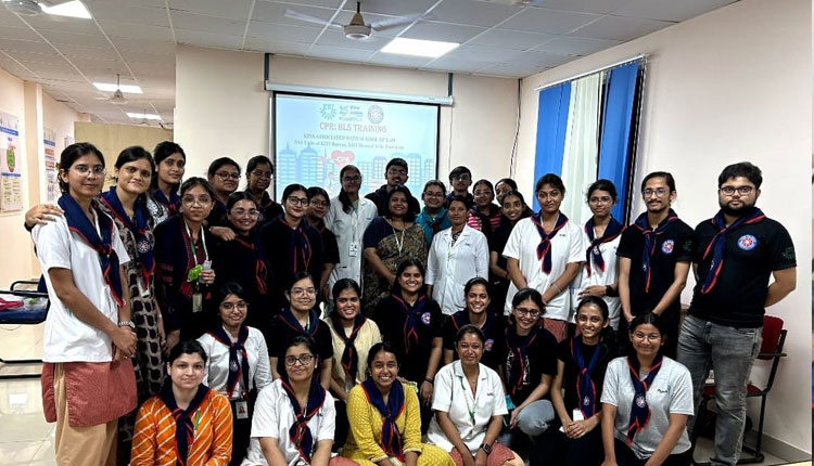 NSS wings of Kalinga Institute of Nursing Sciences (KINS), a constituent of KIIT-DU, organised a training program on cardiopulmonary resuscitation ( and basic life support system on September 7, at Skill Lab, KINS and the programme was conducted by Daini Sunita (KINS-NSS-Project Officer) and Anita Panigrahi (KINS-NSS-PO) and 10 number of KINS NSS volunteers trained 22 NSS volunteers of School of LAW.