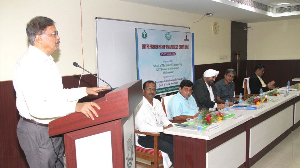 The School of Mechanical Engineering (SME), KIIT Deemed to be University organized an Entrepreneurship Awareness Camp (EAC), sponsored by NSTEDB, Department of Science and Technology, Govt. of India, from 16th to 18th September 2022. Speaking at the inaugural function, Dr. Saranjit Singh, Pro Vice-Chancellor, KIIT-DU underscored the importance of entrepreneurship and shared the success stories of leading entrepreneurs from KIIT as well as eastern part of India.